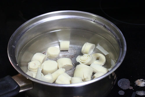- Đổ nước lạnh ngập mặt măng, đun sôi tầm từ 5 đến 10 phút, để măng ra bớt chất chua.